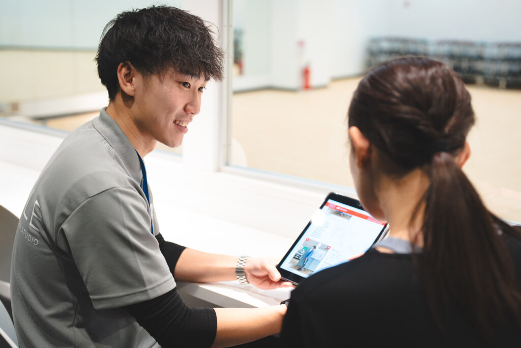 まずは体の状態や目標をヒアリングします。ダイエットや筋力アップなど、目的によってトレーニング内容が変わるため、この工程は非常に重要です。
